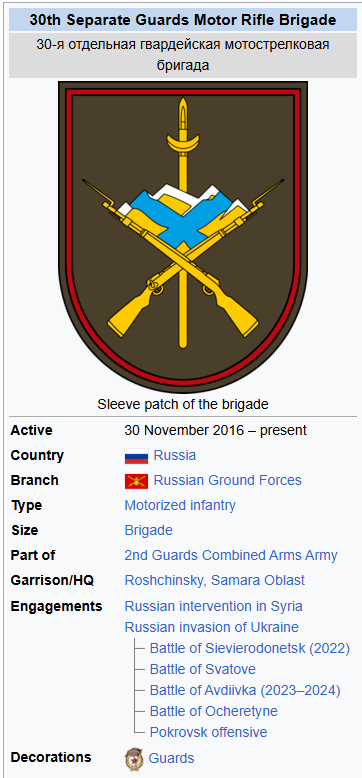 Military unit:#45863 – 30th Separate Guards Motor Rifle Brigade