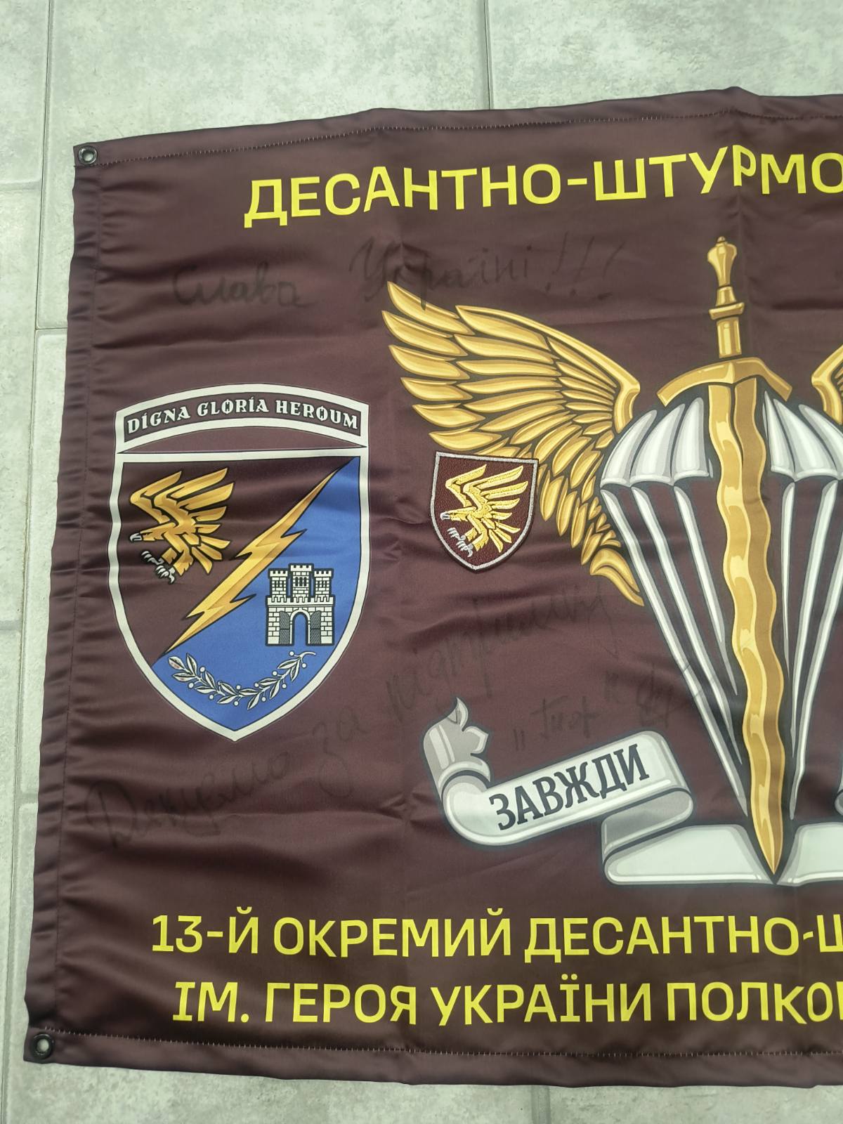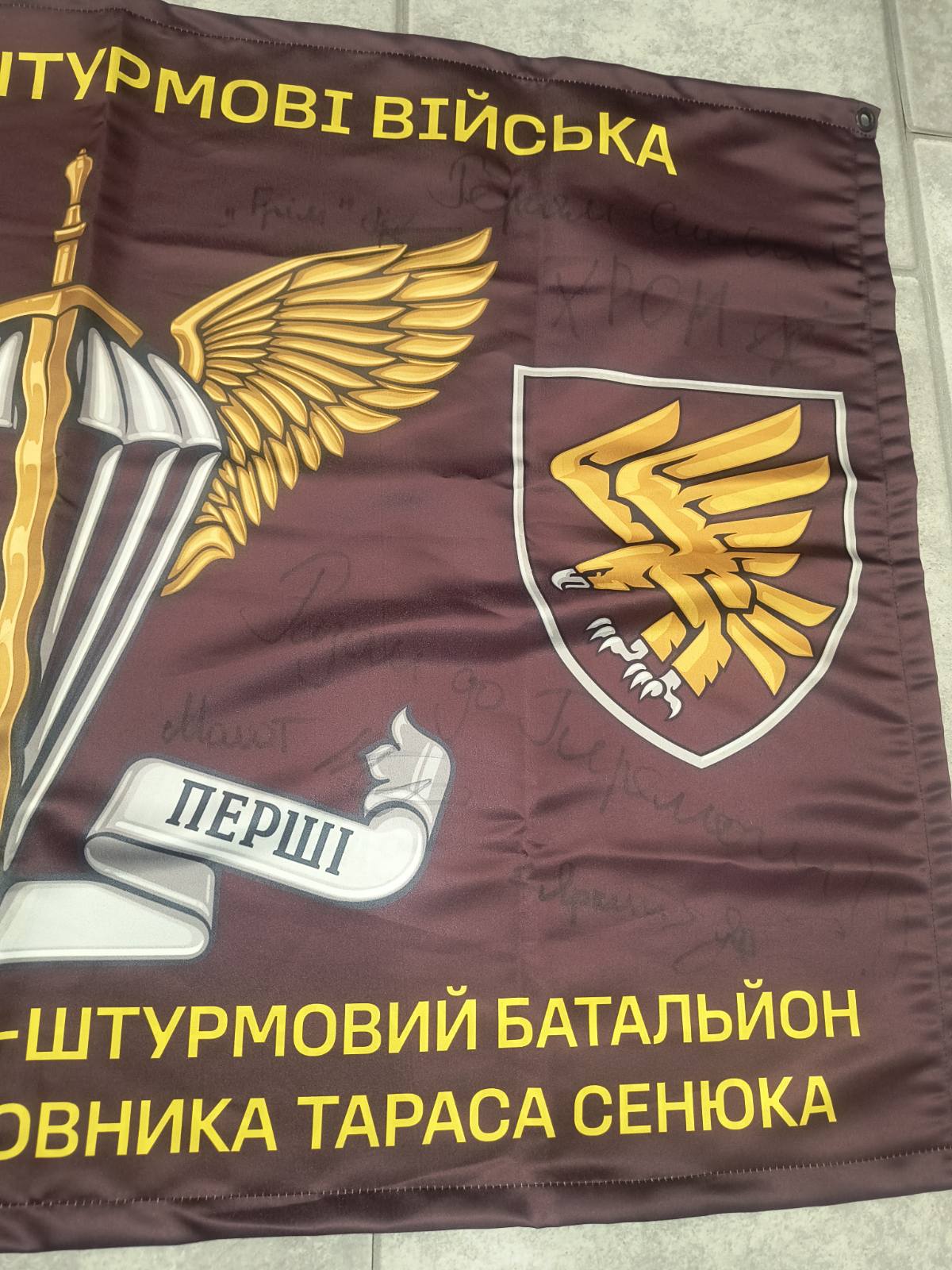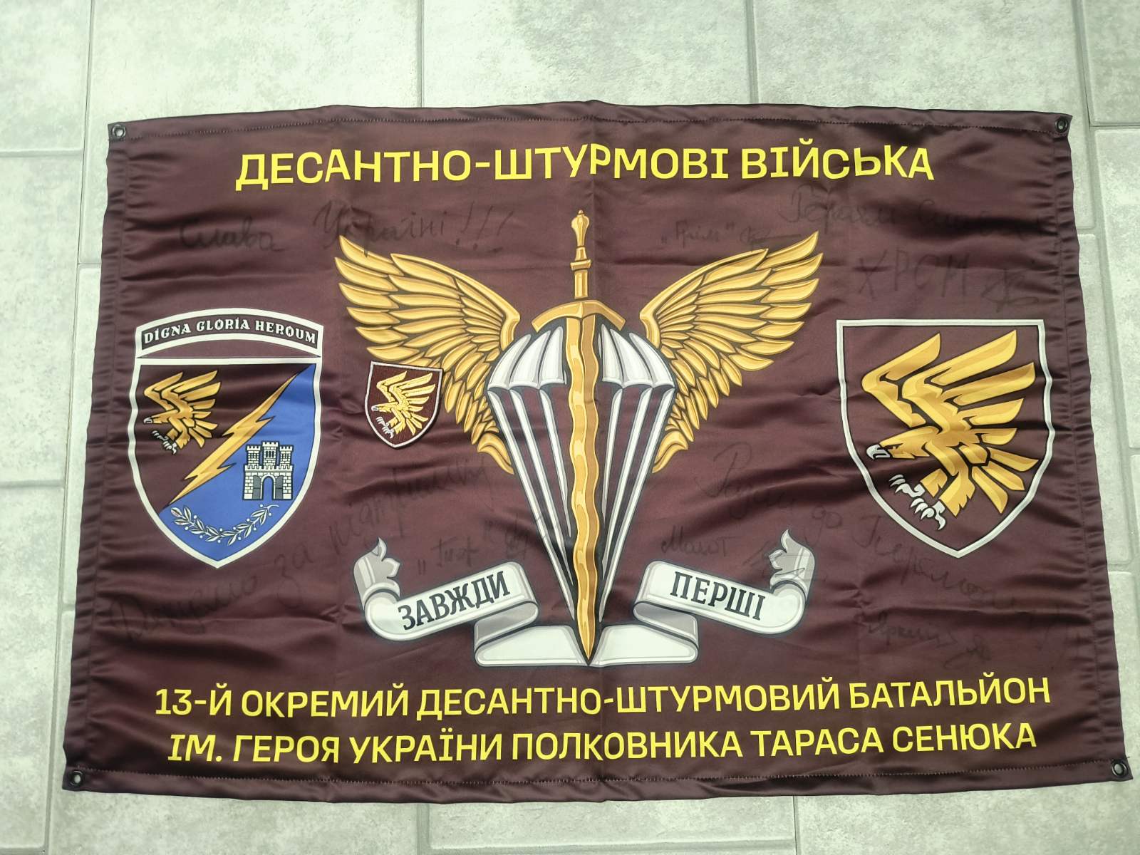 These flags are signed by soldiers of the Ukrainian Armed Forces of different brigades fighting on the front line. The flags are collected by volunteers who bring various aids to these teams. By selling these flags, volunteers raise funds for our heroes who defend our freedom!